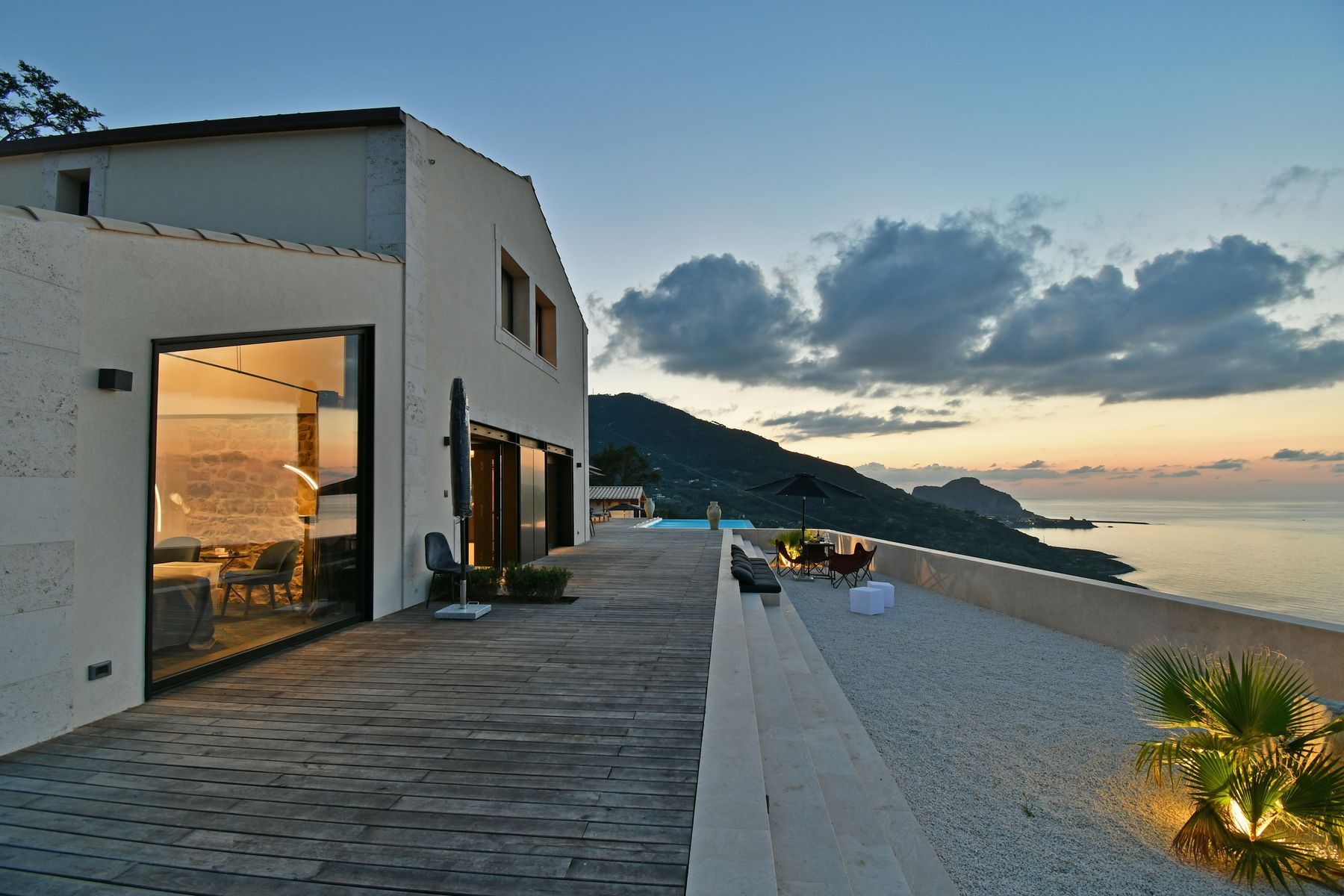 Villa Luna construction involved a radical restyling. The villa, located in Contrada Lacernia, offers a breathtaking view of the coast from Cefalù to Santo Stefano di Camastra and the Aeolian island.